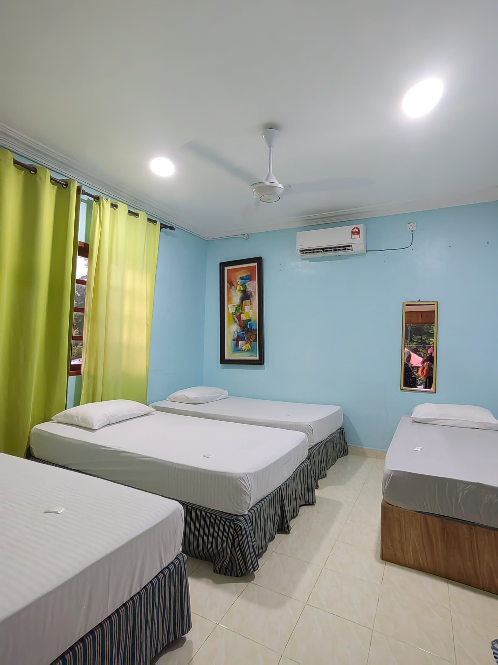 4 Air-conditioned rooms with fans